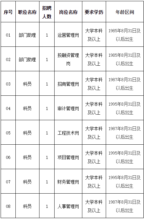 现根据公司业务发展需要,面向社会公开招聘工作人员8名,相关招聘事项公布如下:
