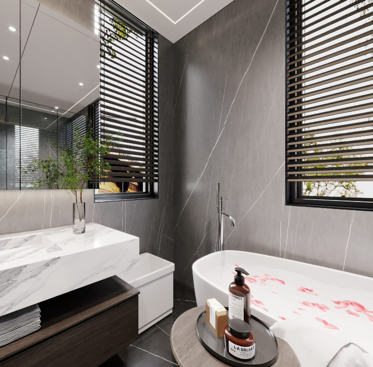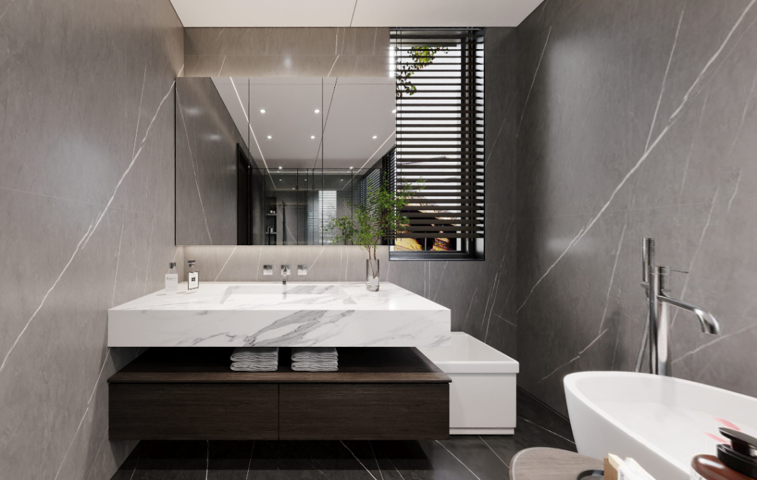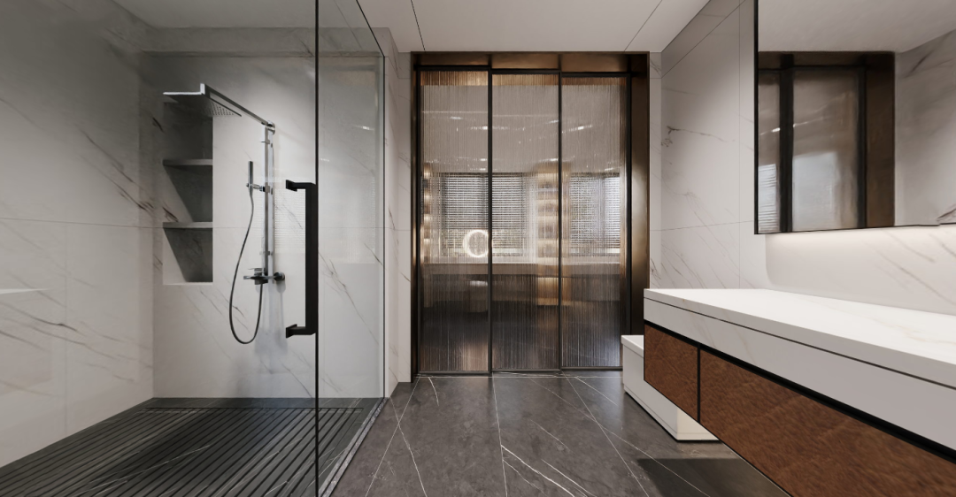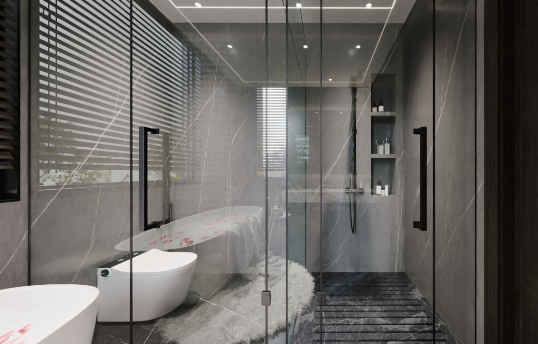 老人房卫生间集洗漱、如厕、淋浴、泡澡四大功能于一体,提供了全方位的生活享受。特别是浴缸的设置,不仅考虑到了未来养老的需求,提供更高的安全性,还能有效缓解身体的酸痛和疲劳,带来更加舒适放松的沐浴体验。