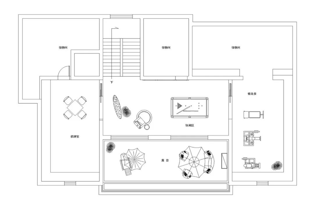 ③整个三楼被设计成了私人会所,包含了棋牌室、台球室、健身区、休闲区等功能,极大丰富了业主一家人的生活。