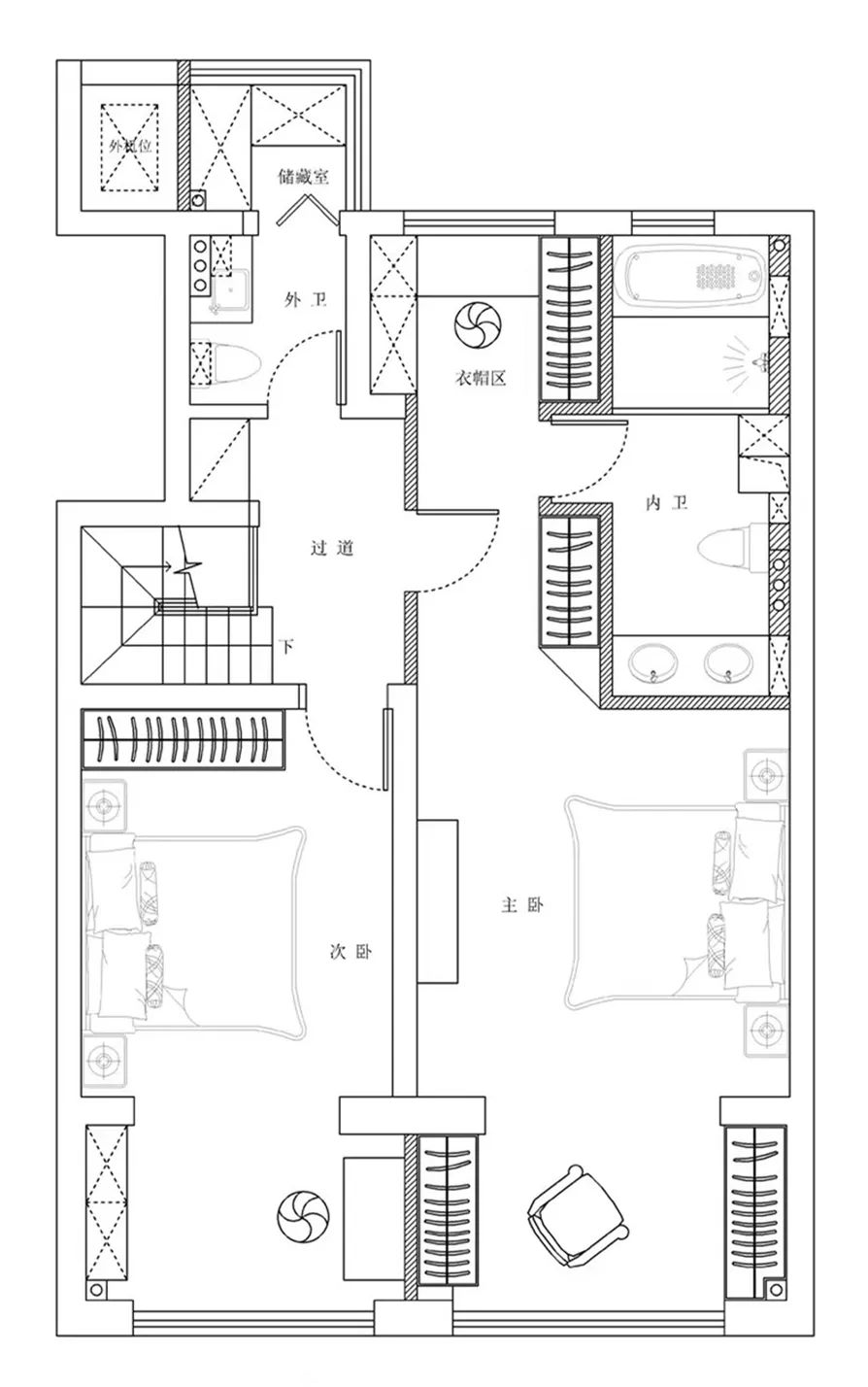 ⑤二楼全部是休息区,房间的功能布局根据小业主夫妻的生活习惯来规划。主卧采用的是套房布局,包含睡眠、沐浴、收纳、梳妆、休闲等多个功能,方便又舒适。#清水江南零投诉##清水江南满意度高达97.6%#