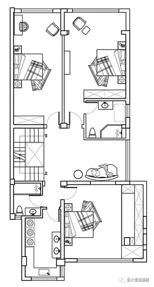 本案这套双拼别墅是业主买来养老住的,因此对它的功能布局、装修设计业主有很多自己的想法,并向清水江南团队提出以下要求:卧室必须够多、够大,这样冬天和夏天可以换着朝向睡(本案共有6间卧室);卧室床的朝向必须根据他定的来,比如二楼次卧、三楼主卧的床要背靠卧室门的这面墙上;沙发必须靠墙(客厅开间有 7.7米),且沙发&电视背景一定要用石材……那么,设计该如何在这么多重局限中寻求突破呢?#清水江南零投诉##清水江南满意度高达97.6%#