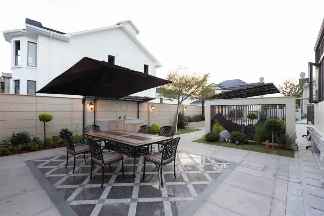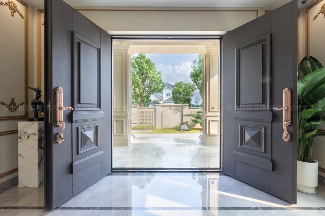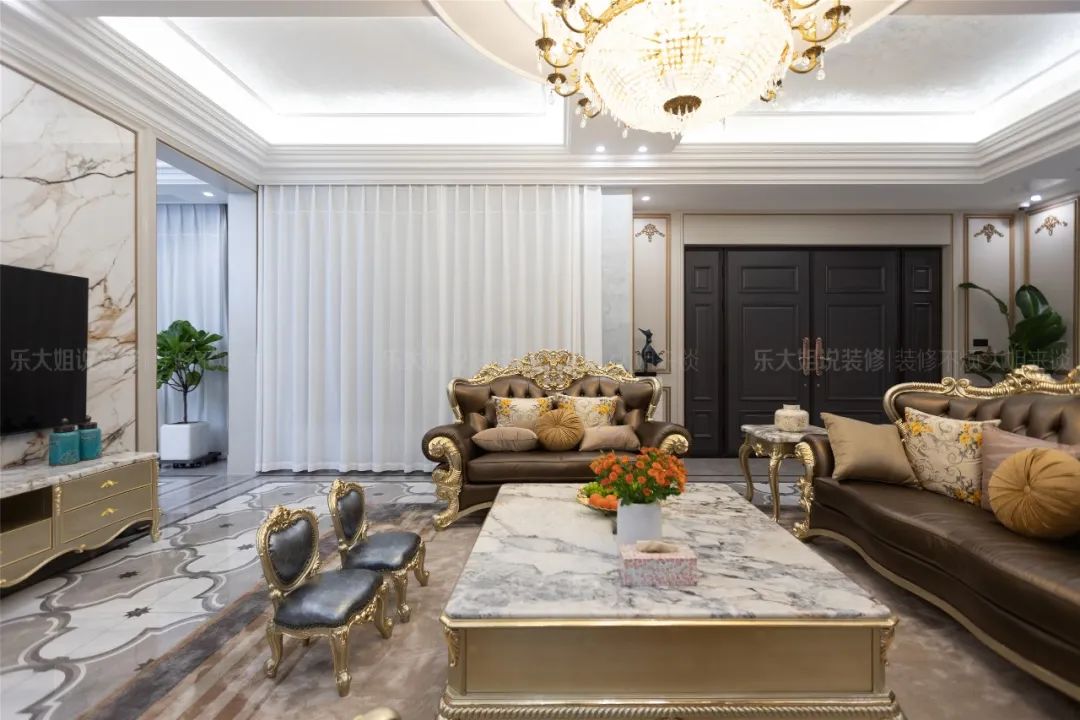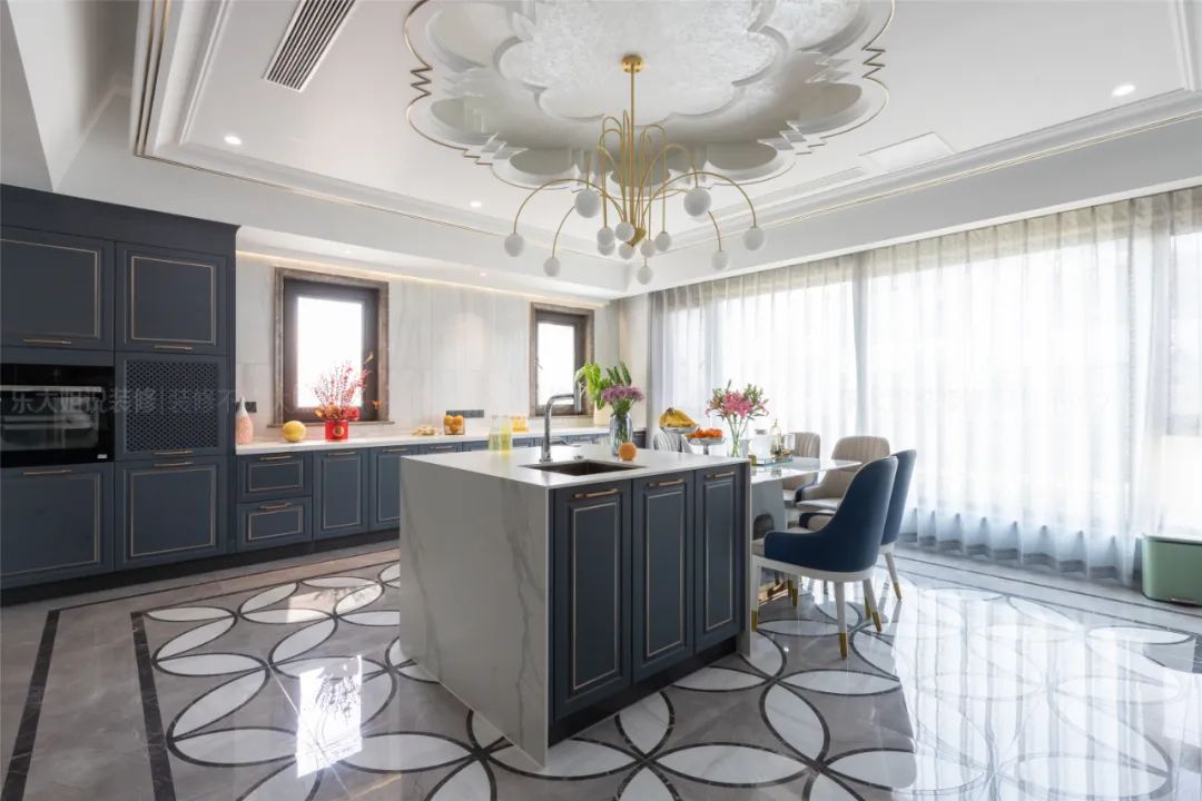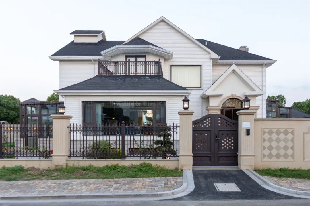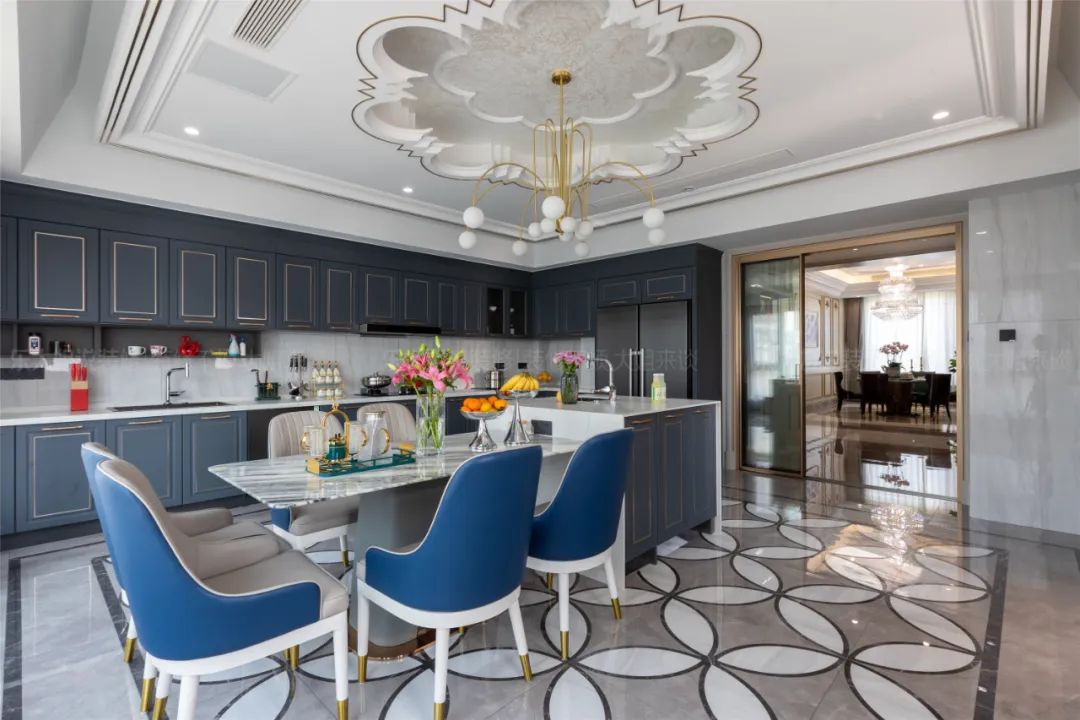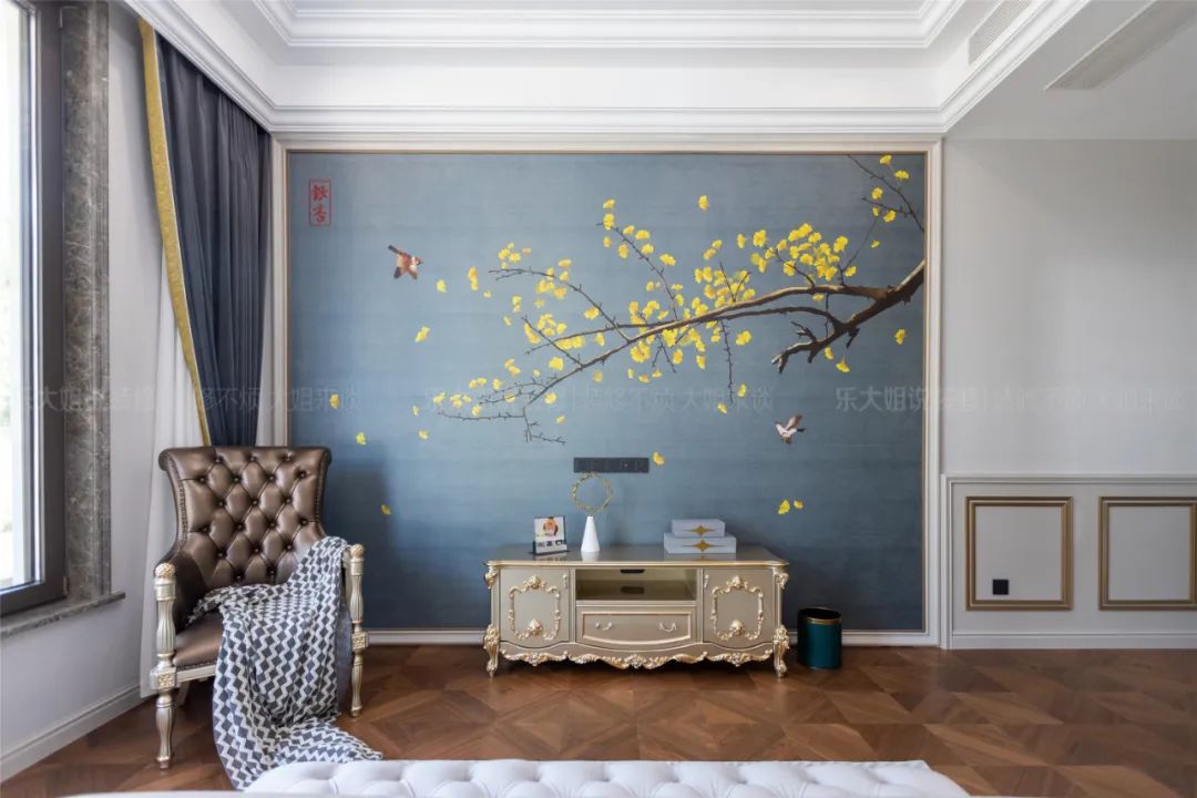 说:“银丽高尔夫这套独栋别墅含阁楼室内面积近1000平,庭院700多平,楼上的露台花园可以看到阳澄湖景,还可以把工业园区的景色尽收眼底,不愧为庄园式的别墅。本案室内设计一反常规的单一风格,采取了美式、欧式、法式的混搭,甚至还用到了些中式元素来满足心心念念喜欢中式风格的男业主。整体以浅色系为基底,加上莫兰迪色的点缀,并采用了大量的描金护墙板、大理石、拱门等经典元素,最终呈现出豪而不俗的大宅气派,大大超越了业主一家人对于豪宅的向往。”
