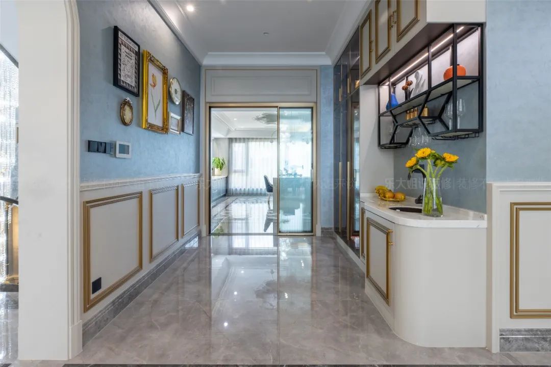 本案位于阳澄湖畔, 16万亩阳澄湖水环绕相拥,用高尔夫球场造就小区环境,一片湖景,一座球场,当之无愧地成为苏州市区最醇粹的庄园式别墅。设计上为与业主一家人的审美习惯和整体建筑外观相匹配,摒弃了传统单一、固化的风格,将欧式、美式与法式相结合,在不同风格的经典元素与材质中穿插,最终造就了这座大宅独特的气质色彩,既典雅又奢华。#苏州清水江南怎么样##清水江南装饰零投诉#[A1]