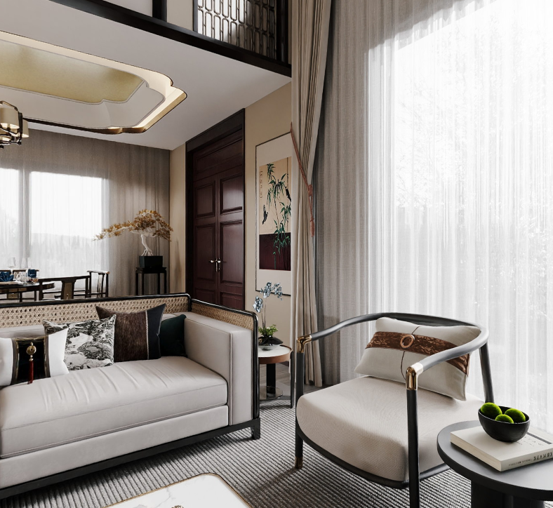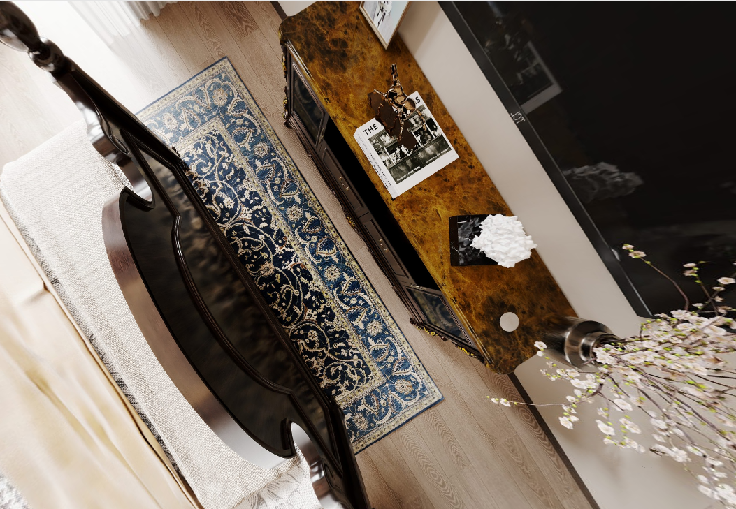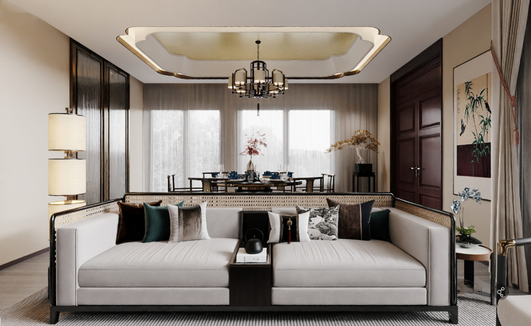 局改+软装搭配,其实是一个不断提高生活品质、取悦自己的过程,在硬装不大动的基础上,用局部调整&软装进行颠覆性的改造,平庸到华丽,凑合到合乎心意,转身进入NEXT LEVEL。本案作为开发商打造的样板间,原装修档次较高,故改造时许多经典的元素和内饰被保留了下来,包括奢感十足的吊顶、带有中式线条的背景、地砖等等,搭配大大的落地窗,给人一种跨越时空的东方诗意美感。