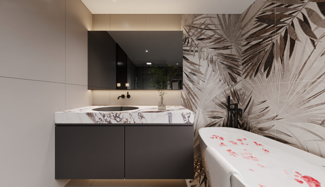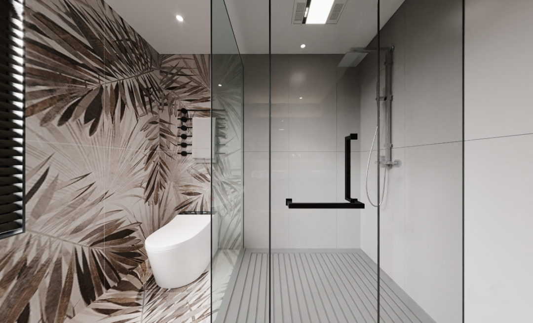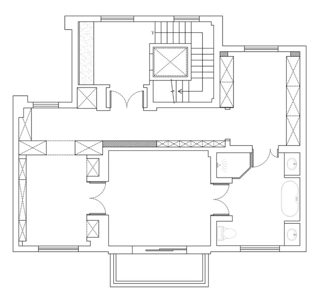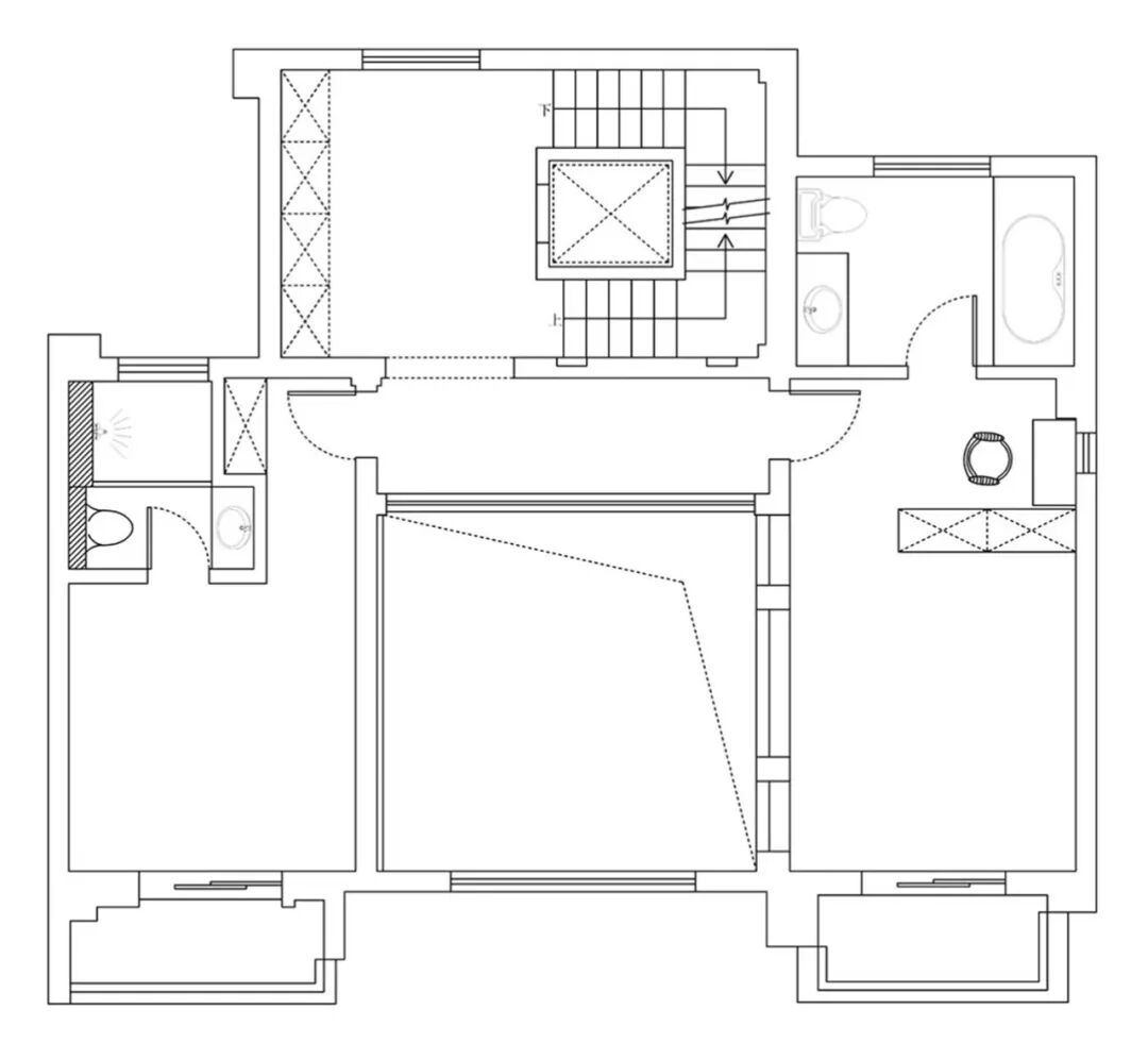 三楼卫生间重新做了规划,面积虽有所缩减,但新增了水吧台和梳妆区,使得空间功能更加完善。