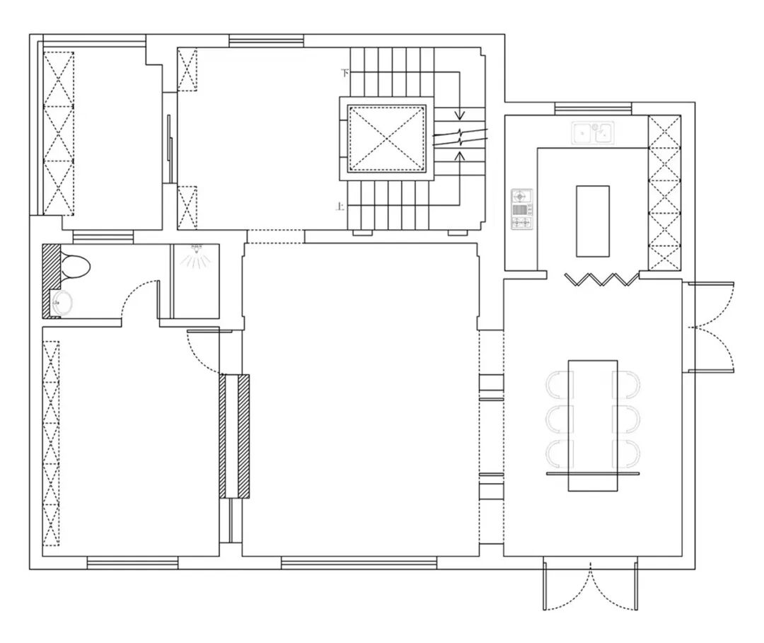 然而,原客餐厅之间设有装饰隔断,将整个大横厅一分为二,给人感觉空间很是局促压抑。故,设计时将之取消,让客餐厅恢复其原本应有的开阔大横厅格局。加上客厅6.3m的层高,整个空间变得既大气挺拔又开阔舒朗。当人们漫步于客厅,落座于餐厅,轻柔的微风拂过空间的每一寸,光影的细节定格着生活的日常,一切是那么的宽广自由,内蕴诗意。
