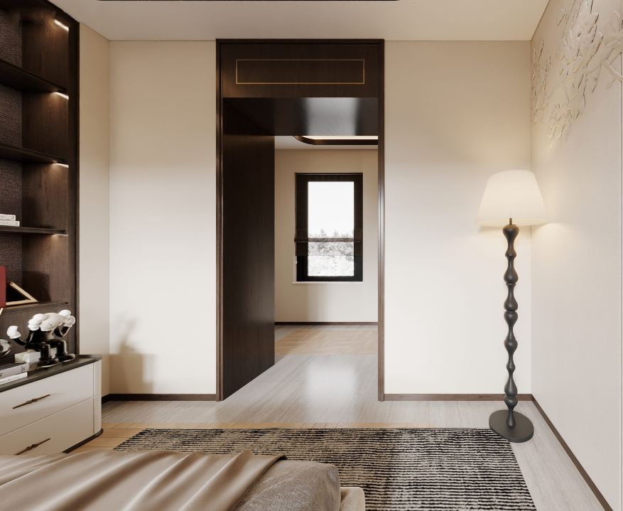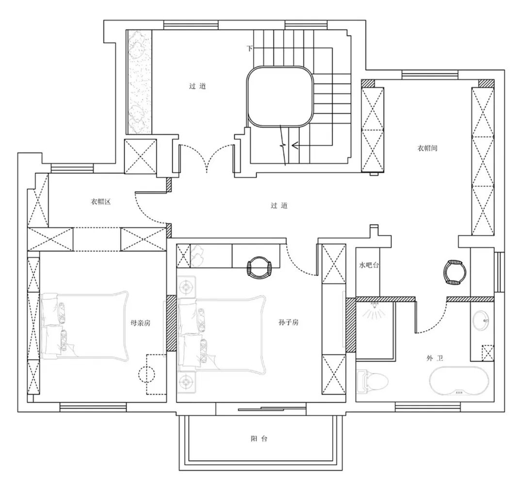 设计,需因人而异,量身定制。原样板房三楼整层都是套房设计,但因本案居住人口较多,三楼要住老人和她的小孙孙,故格局做了很大的调整。其中,原书房+过道被改造成了母亲房,为长辈提供了一个温暖而私密的小套房,同时还将过道的柜子纳入了进来,丰富了卧室的收纳功能。且过道的窗户,也成了室内的一部分,南北通透,舒适度极高,老太太非常喜欢。