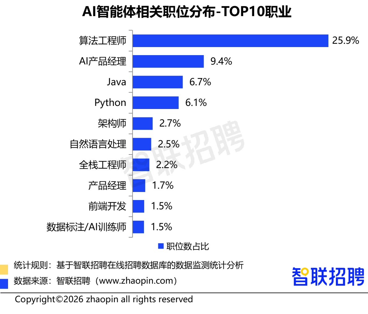 开发人才是智能体业务需求主体,算法工程师职位数占比25.9%