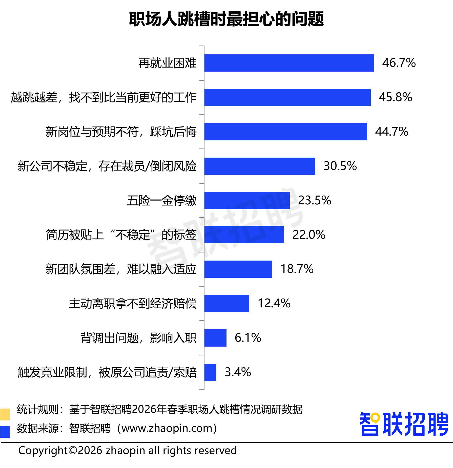 近半数职场人担忧跳槽风险,"再就业困难"成为核心焦虑
