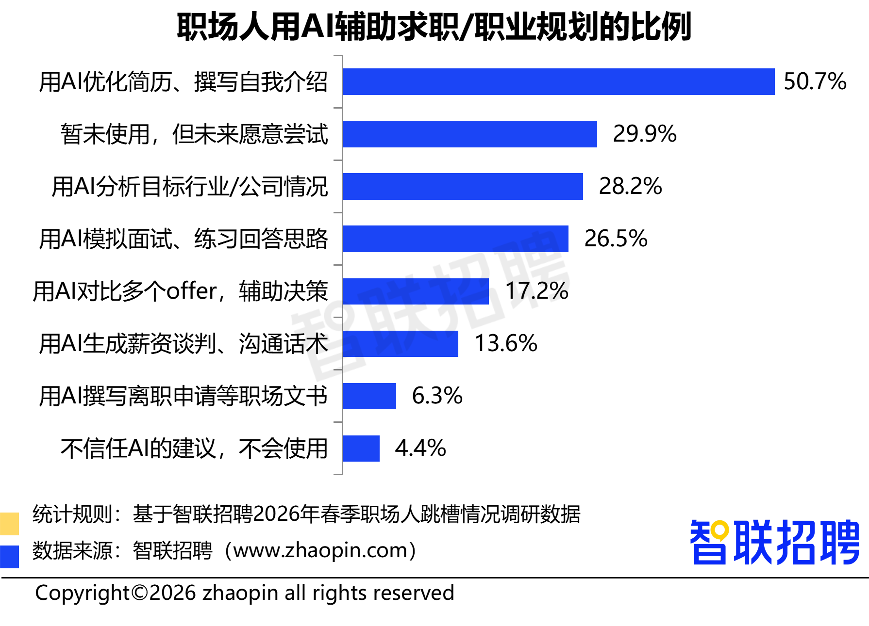 AI成为跳槽新助力,50.7%的职场人用AI工具优化简历