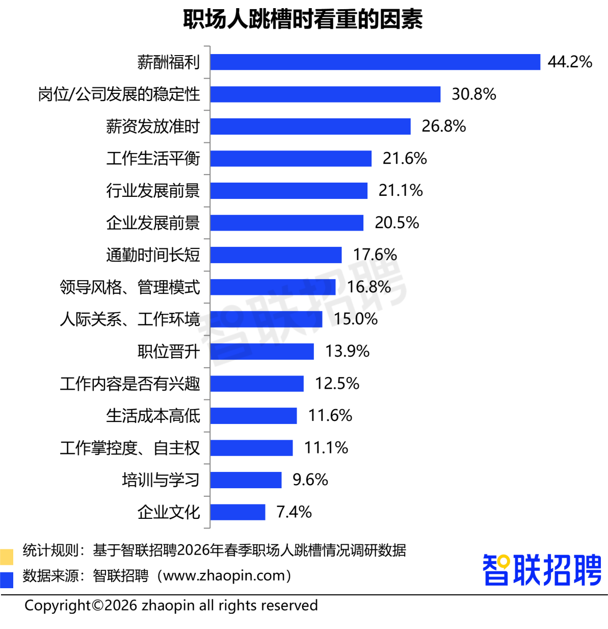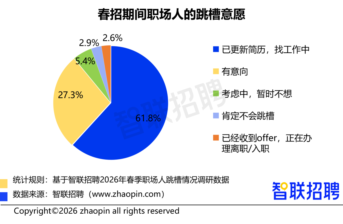——智联招聘《2026春季职场人跳槽情况调查报告》