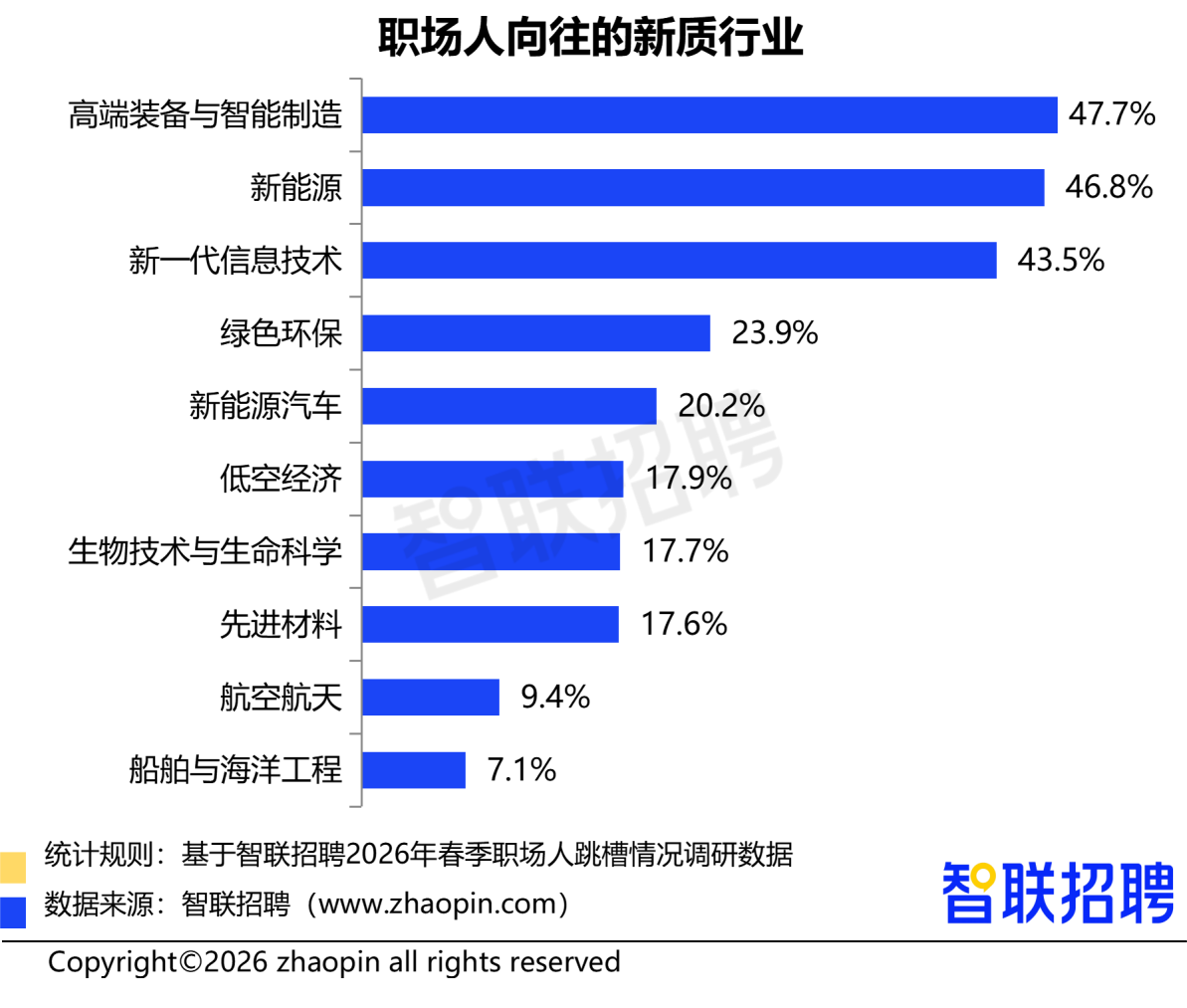 87.6%职场人愿意投身新质生产力领域,高端装备与智能制造行业最受青睐